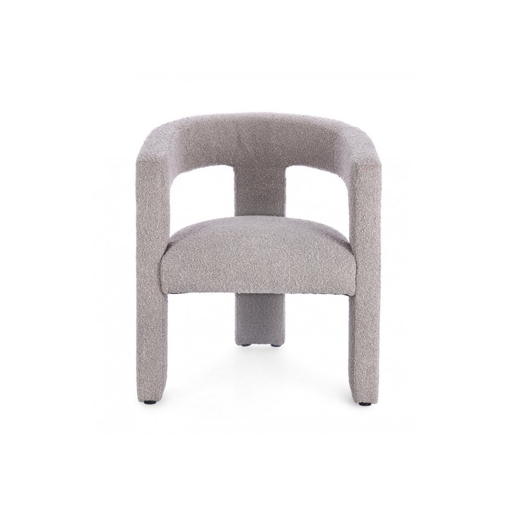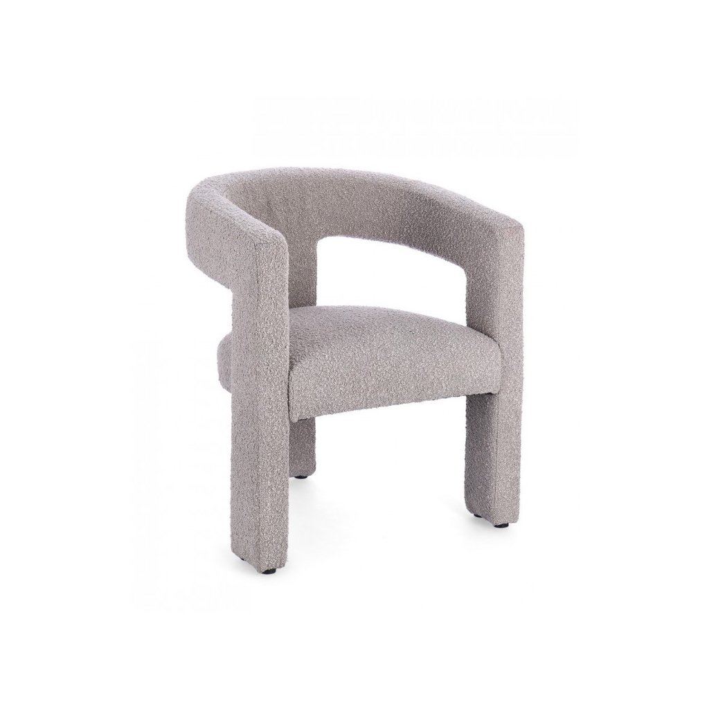 Dizajnová jedálenská stolička ARABELLA od talianskeho výrobcu kvalitného nábytku BIZZOTTO. Kreslo ARABELLA má skutočne jedinečný a netradičný vzhľad s ľahkým nádychom retro. Pevnú stabilitu udržujú nohy zo dreva. Hlavnou črtou tejto stoličky je viditeľná konštrukcia z 3 nôh, ktoré sú spojené s operadlom. Všetky sú kompletne čalúnené sivým vlneným poťahom bouclé. Túto stoličku si určite okamžite zamilujete.
