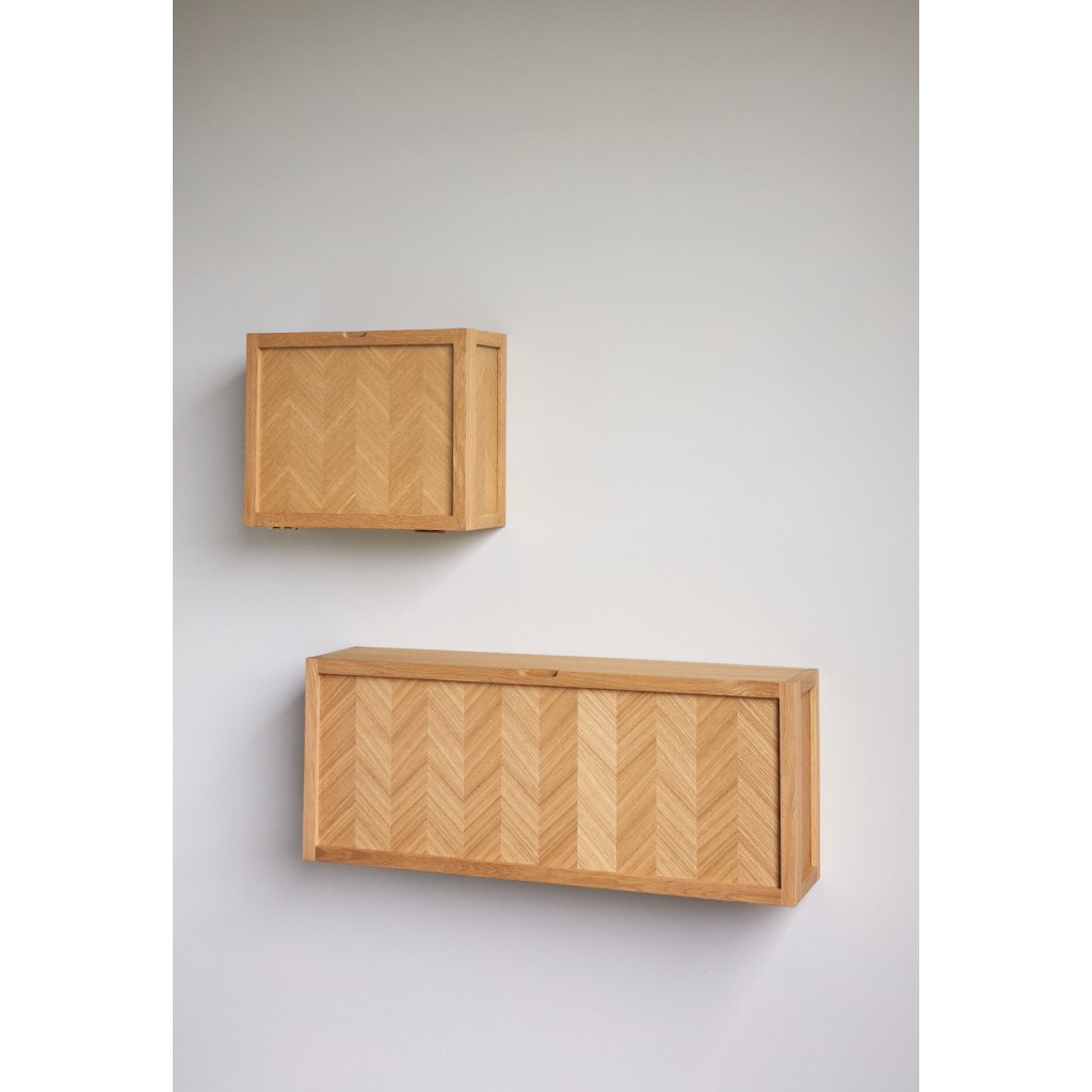 Dizajnový botník HERRINGBONE od dánskej škandinávskej značky nábytku HÜBSCH. Stojan na topánky je krásnym predstaviteľom škandinávskeho dizajnu. Pozostáva z MDF dosky s dubovou dyhou v kombinácii s masívnym dubovým drevom. Drevo má certifikácia FSCčo znamená, že pochádza z etických a udržateľných zdrojov. Za dverami sa nachádza priestor na odkladanie topánok.