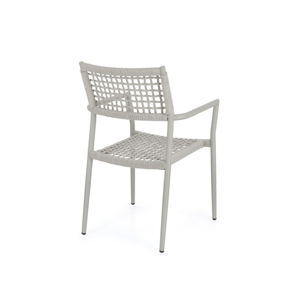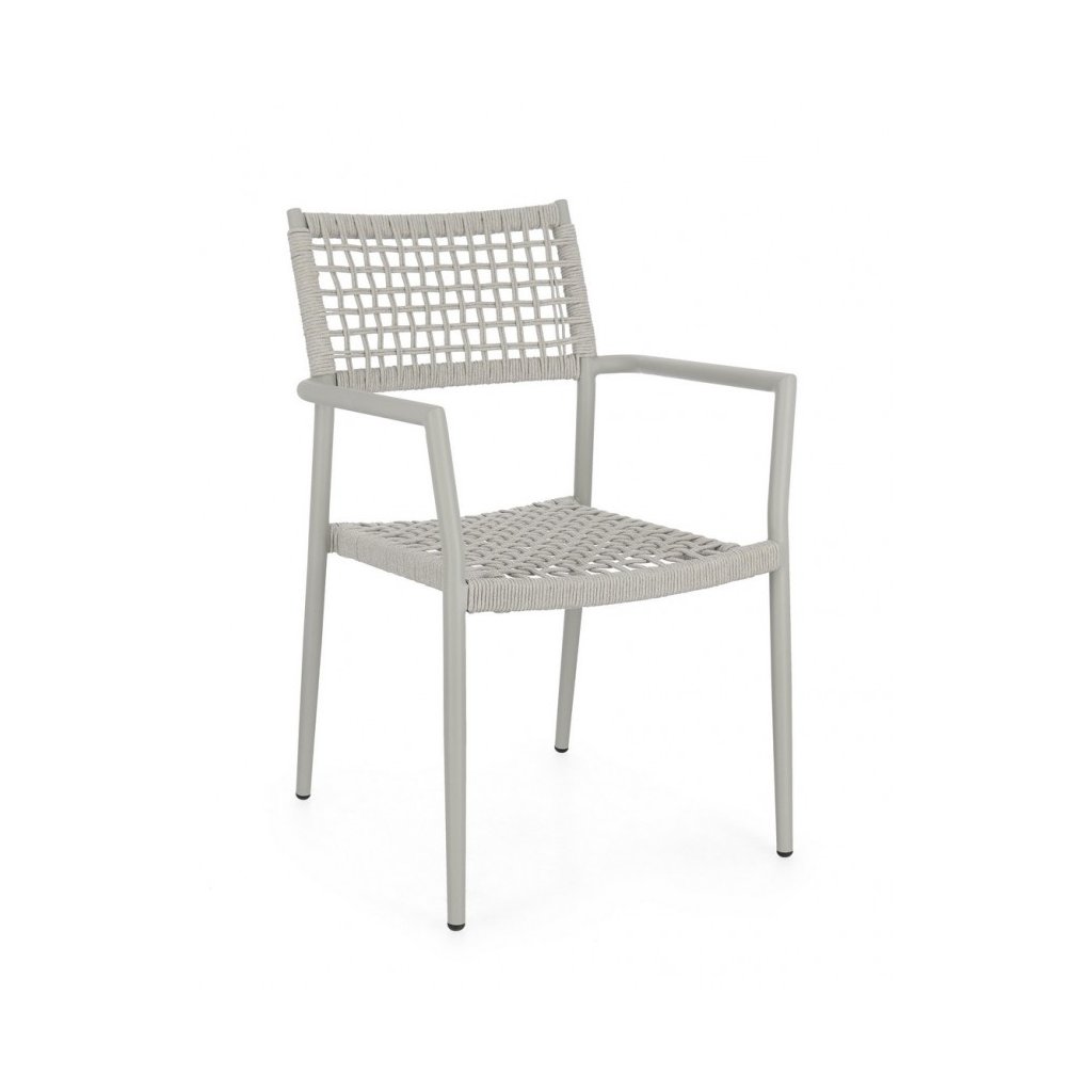 Dizajnová záhradná stolička CALETA od talianskeho výrobcu štýlového nábytku BIZZOTTO. Stolička CALETA má hliníkovú konštrukciu s práškovou povrchovou úpravou v sivej farbe. Sedák a operadlo sú vyrobené prevažne zo syntetických vlákien v rovnakej sivej farbe. Oceníte aj kovové podrúčky pre väčšie pohodlie. Vďaka odolnému materiálu ho možno používať v interiéri aj exteriéri. Stolička je plne stohovateľná, takže ju môžete na zimu odložiť.
