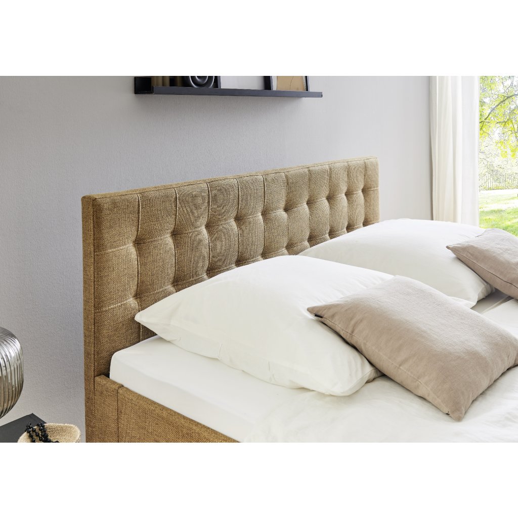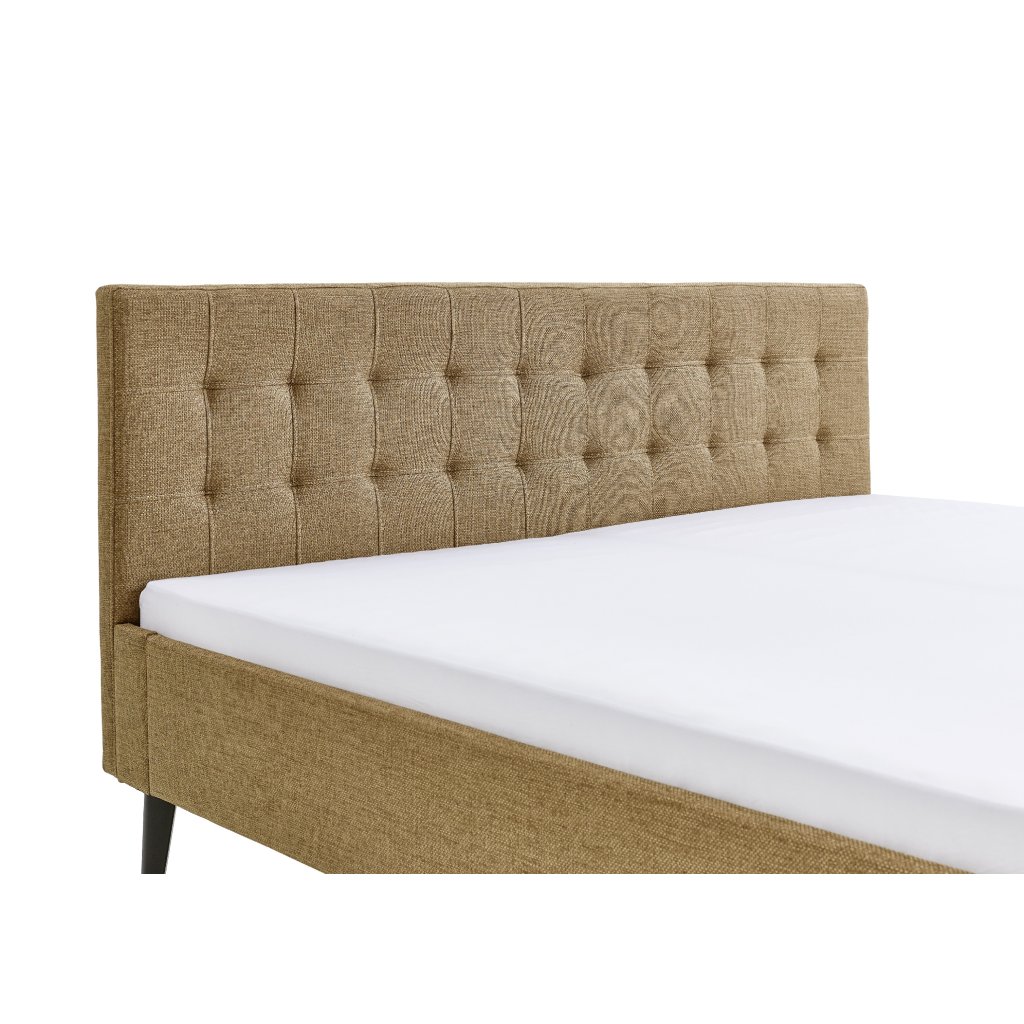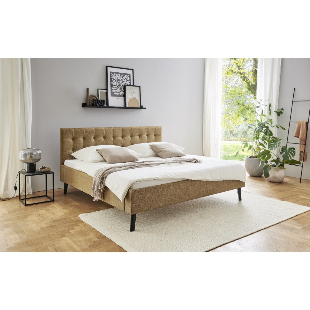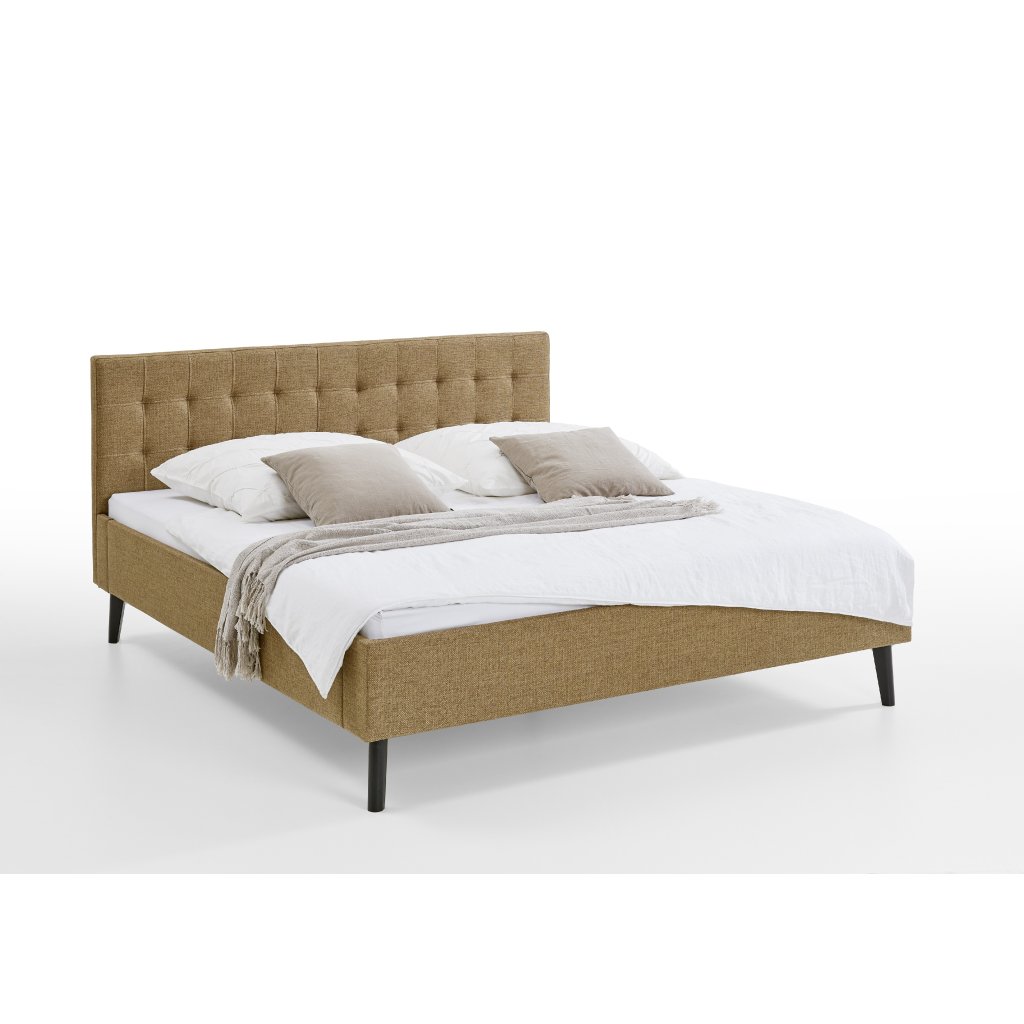 Čalúnená posteľ EMPIRE 180x200 od nemeckého výrobcu nádherných postelí MEISE MÖBEL v prevedení okrovej látky. Posteľ má rozmery 186x208 cm, výška čela je 100 cm. Je vyrobený z masívneho dreva, peny a príjemnej látky v okrovožltej farbe. Matrac je možné zakúpiť s rozmermi 180x200 cm a výškou od 10 cm.