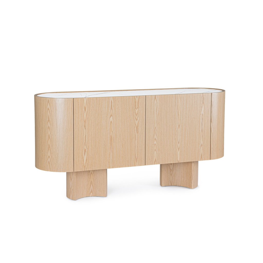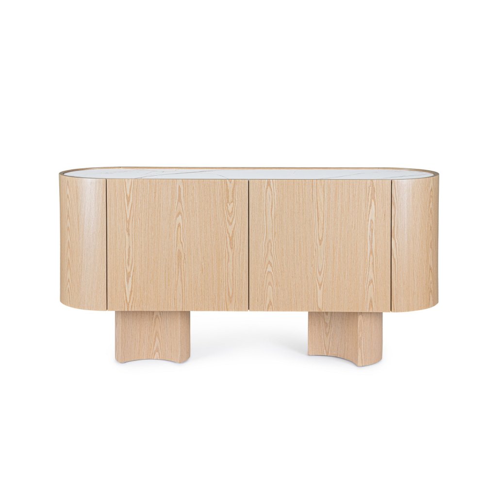 Dizajnová komoda OTILIA od talianskej firmy štýlového nábytku BIZZOTTO. Komoda OTILIA je vyrobená z mdf dosiek v krásnom odtieni dubovej dyhy. Komoda má dve bočné do strany otvárajúce sa dvierka, za ktorými sa skrýva úložný priestor políc. Vrchná doska je z kameňa v krásnom prevedení bieleho mramoru.