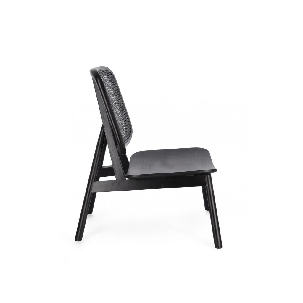 Dizajnové drevené kreslo YVES od talianskeho výrobcu nádherného nábytku BIZZOTTO. Kreslo tvorí rám z masívneho teakového dreva v čiernej farbe. Konštrukcia je zložená zo 4 nôh, ktoré sú navzájom prepojené ďalšími drevenými prvkami, čo zaisťuje kreslu maximálnu nosnosť a stabilitu. Nohy prechádzajú v sedák, ktorý je tvarované drevené dosky. Opornú časť tvorí taktiež čierny ratanový výplet v drevenom ráme.