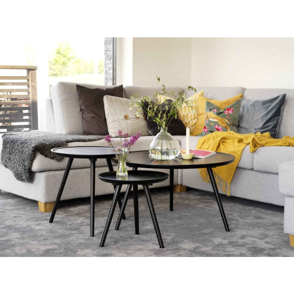 Štýlový konferenčný stolík DAISY od švédskeho výrobcu kvalitného nábytku ROWICO. Stolík sa dodáva v prevedení drevovláknitej mdf vrchnej okrúhle dosky s jemným čiernym povrchovým lakom a nepatrne zvýšeným okrajom ak tomu pripevnených 3 nôh z masívneho dreva kaučukovníka, ktoré sú taktiež opatrené čiernym povrchovým lakom.