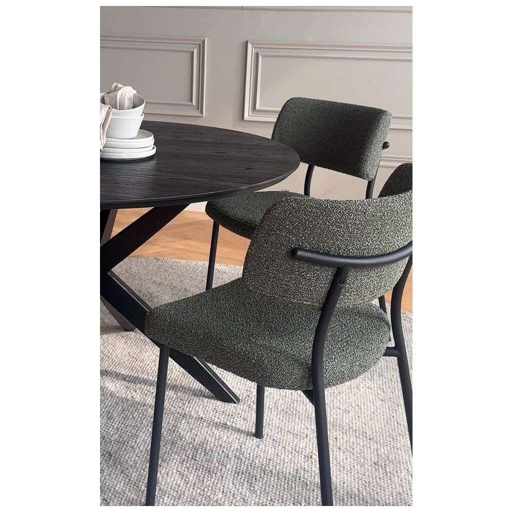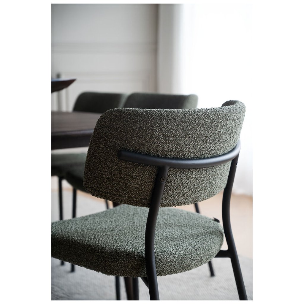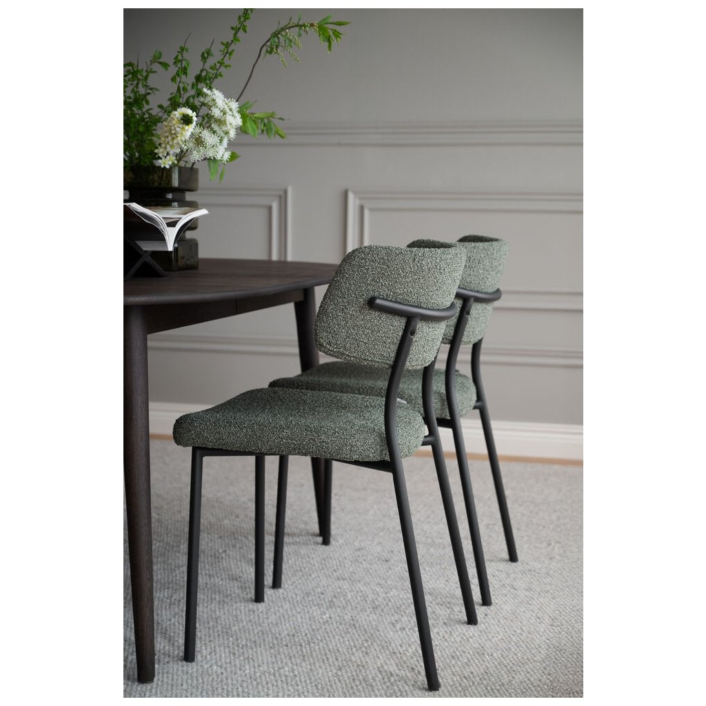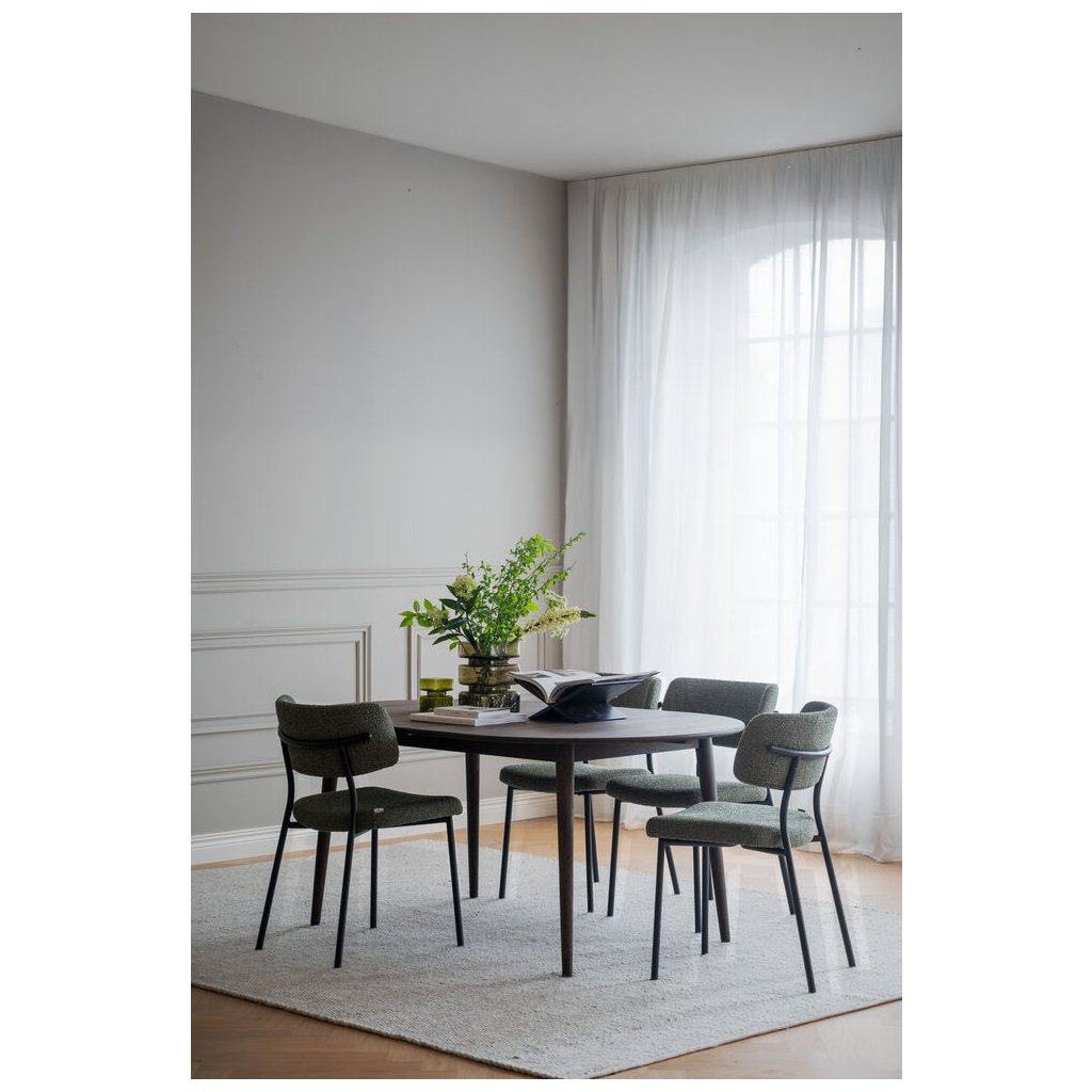 Dizajnová jedálenská stolička HERBSTER od švédskeho dizajnového výrobcu kvalitného dreveného nábytku ROWICO. HERBSTER je čalúnená zelenou látkou s výraznou štruktúrou pripomínajúcou buklé, ktorá pôsobí nielen vizuálne atraktívne, ale aj príjemne na dotyk. Trendová farba dodá interiéru sviežosť a osobitosť, či už ju umiestnite k stolu alebo použijete ako doplnkové sedenie v obývacej izbe. Konštrukcia z ohýbané preglejky a oceľový rám s pieskovo štruktúrovaným práškovým lakom zaisťujú pevnosť aj dlhú životnosť. Výplň z polyesterovej peny poskytuje komfortnú oporu pri každodennom používaní. Certifikácia FSC garantuje, že použité drevo pochádza zo zodpovedne obhospodarovaných lesov, a robí z tejto stoličky nielen štýlovú, ale aj udržateľnú voľbu pre váš domov.