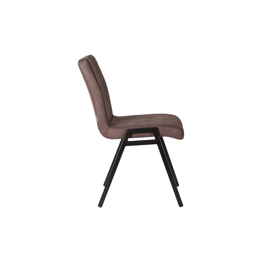 Jedálenské stoličky MATZ od holandského výrobcu industriálneho nábytku LABEL51. Jedálenská stolička MATZ tvorí <strong+hnedo prešívané sedadlo s operadlom z mikrovlákna a štyri čierne kovové nohy. Pevné nohy zabezpečujú stoličke maximálnu stabilitu a nosnosť. Stolička má moderný dizajn a zabezpečí vám naozaj pohodlné posedenie.