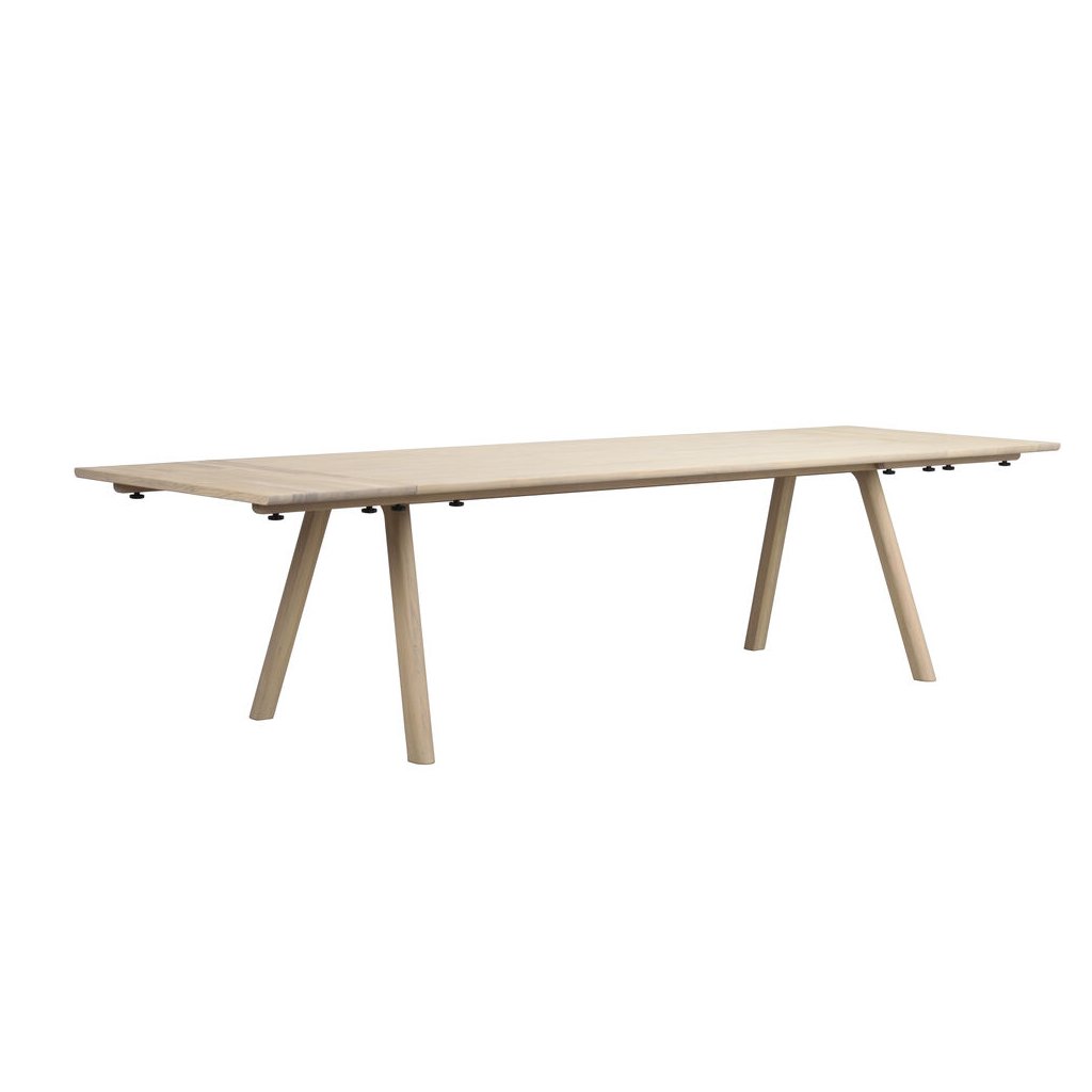 Dizajnový jedálenský stôl CLAPPERTON od švédskeho výrobcu kvalitného dreveného nábytku ROWICO. CLAPPERTON kombinuje zaoblené a rovné línie, ktoré vytvárajú silný vizuálny dojem. V interiéri pôsobí ľahkým a vzdušným dojmom, bez toho, aby strácal na robustnosti. Doska z masívneho duba a lamelové nohy sú ošetrené olejom, ktorý zvýrazňuje prirodzenú štruktúru dreva a zároveň poskytuje vysokú odolnosť proti opotrebovaniu. Vďaka možnosti rozšírenia až na 310 cm pomocou prídavných dosiek (predávajú sa samostatne) je stôl dokonalou voľbou pre každodenné stolovanie aj väčšie spoločenské stretnutia. CLAPPERTON je vyrobený v Európe zo dreva s certifikáciou FSC.