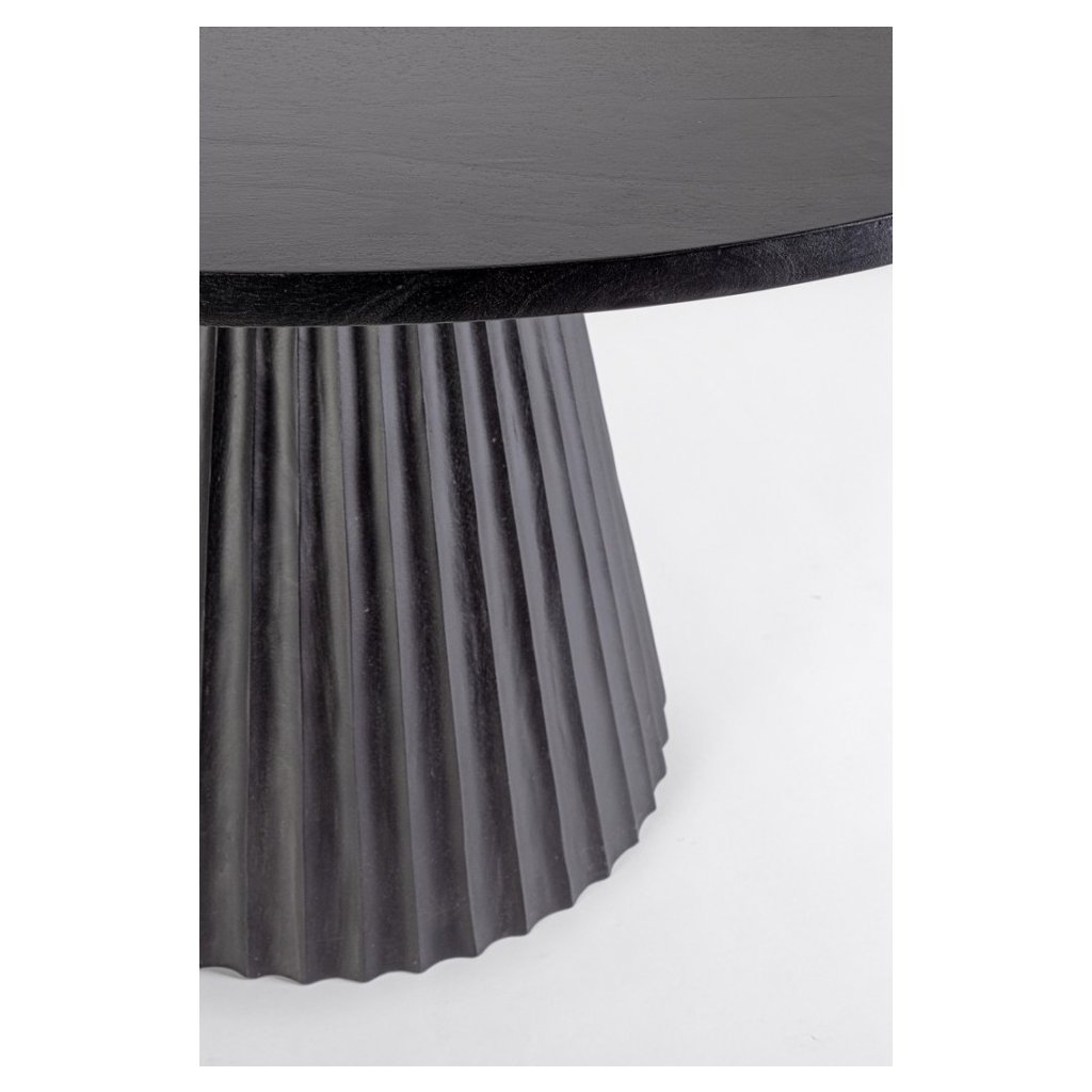 Dizajnový jedálenský stôl ORISSA od talianskeho výrobcu kvalitného nábytku BIZZOTTO. Stôl ORISSA je plne organický, vyrobený z mangového dreva a na záver ošetrený čiernym lakom. ORISSA je tvorený okrúhlou doskou s priemerom 120 cm a masívnym kužeľovitou nohou. Pri stole sedí 6 ľudí. Dokonalý stôl, ktorý sa hodí do vašej domácnosti.