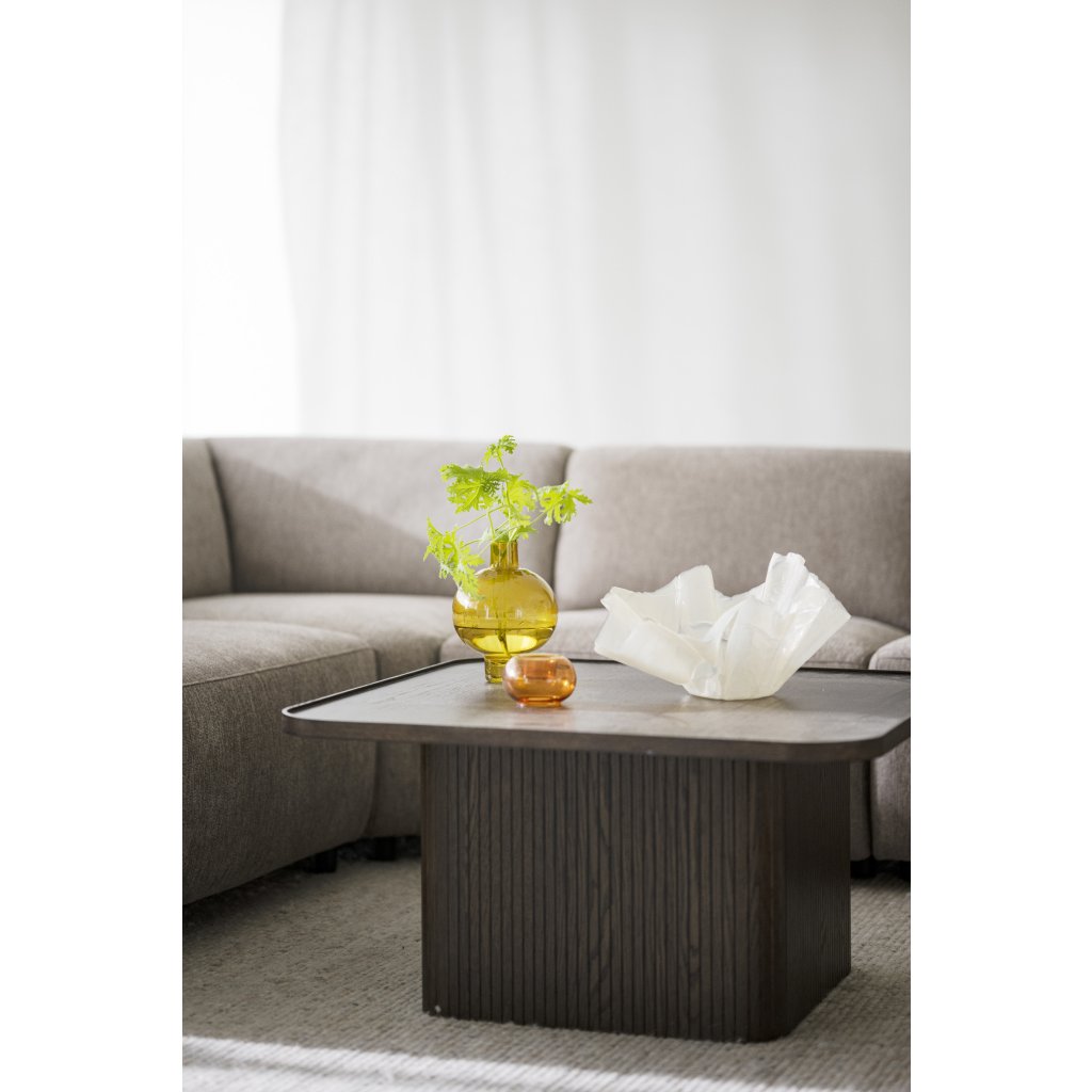 Konferenčný stolík SULLIVAN od švédskeho výrobcu kvalitného dreveného nábytku ROWICO. Tvorí ho vrchná štvorcová doska sa zaoblené hrany a horný zvýšený okraj proti pádu ľubovoľných predmetov na zem. Doska je vyrobená z krásne tmavé dubové dyhy . Noha stola má štýlové línie. Má taktiež pravidelný tvar a je z rovnakej dubovej dyhy. Nádherný detail tvorí jemné drážky v dýze, ktoré vytvárajú skutočne unikátny stolík.