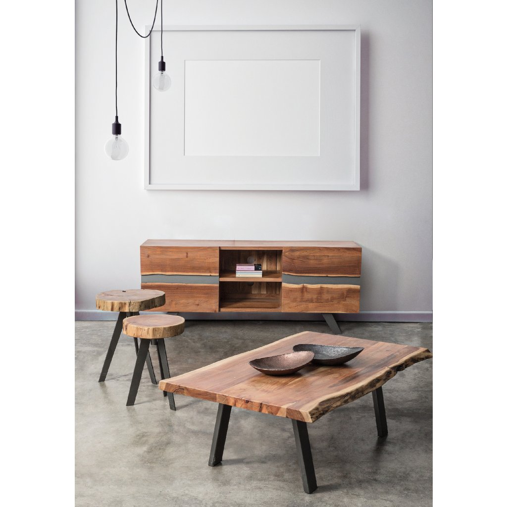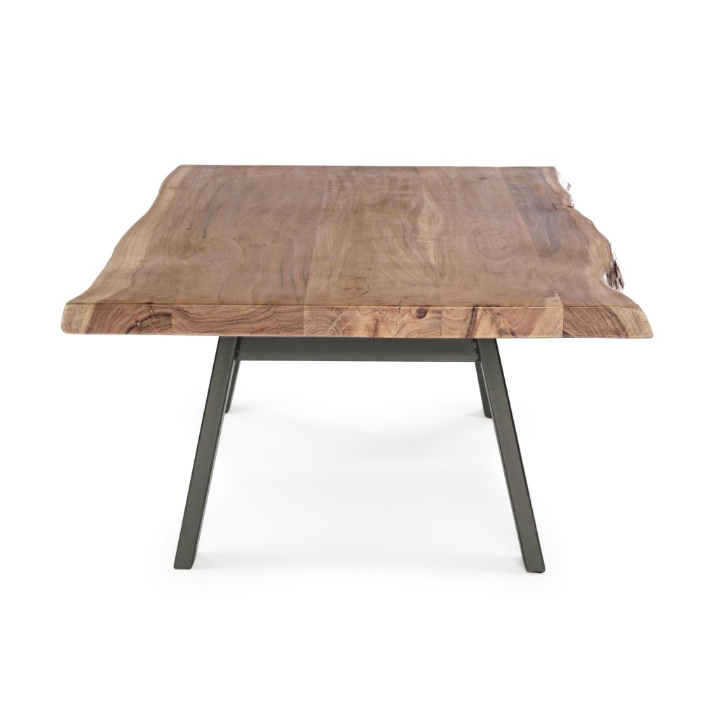 Konferenčný stolík ARON od talianskej spoločnosti štýlového nábytku BIZZOTTO. Stolík ARON je tvorený obdĺžnikovou doskou z akáciového dreva a štyrmi nohami z čierne práškované ocele. Doska má nepravidelné pôvodné tvary a každá je unikátna vďaka ručnej výrobe. KKonferenčný stolík ARON si jednoducho obľúbia nadšenci industriálneho masívneho nábytku.