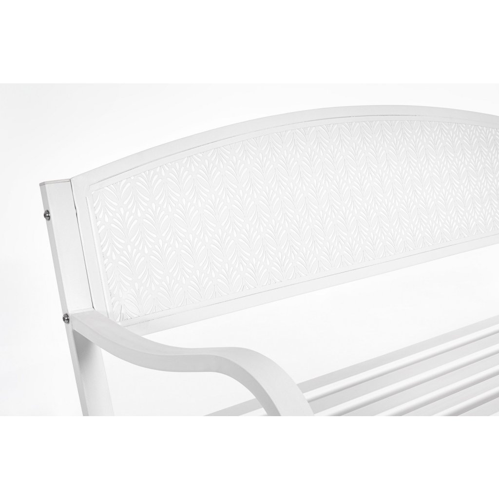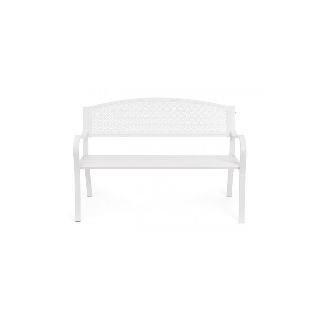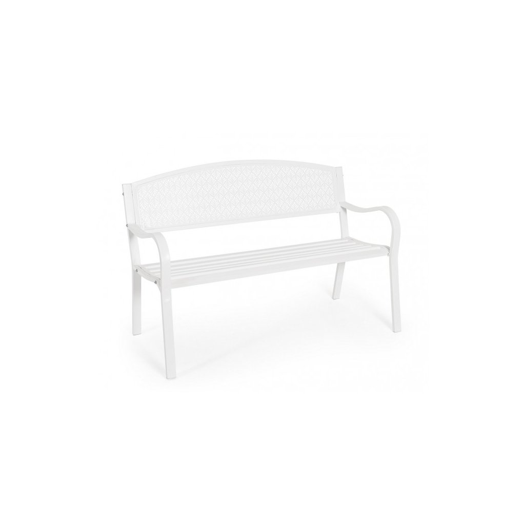Štýlová vonkajšia lavica LIZETTE od talianskeho výrobcu štýlového nábytku BIZZOTTO. LIZETTE je dodávaná v prevedení bielo lakovaného kovu pre vonkajšie účely. Má 4 decentné kovové nohy, 2 bočné podperky pre lepšiu manipuláciu a držanie, sedadlo z jednotlivých podélnych kovových "prkien" a opierku riešenú do ľahkého oblúku s dekoratívnym výplňou. V dostupná aj v ďalších farbách.