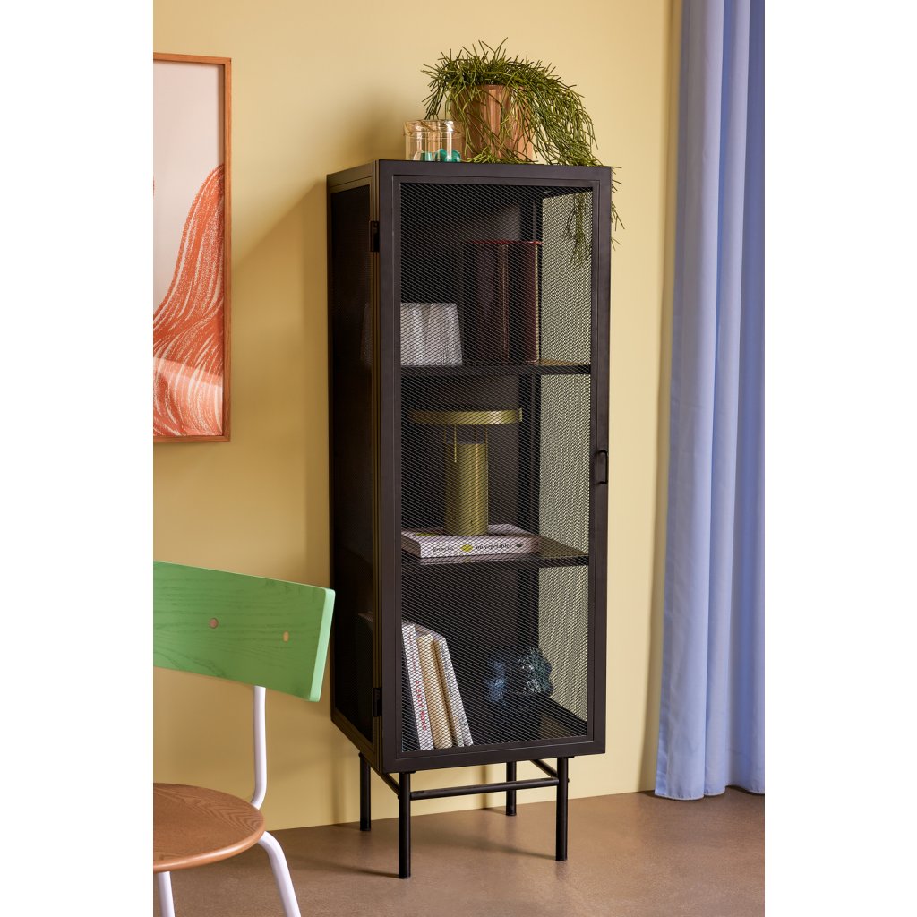 Dizajnová skriňa EDGEod dánskej škandinávskej nábytkárskej značky HÜBSCH. Skriňa je kompletne vyrobená z kovu v čiernej farbe. Ponúka tri police na vystavenie kníh, dekorácií alebo riadu. Skriňa má priehľadné dvierka, vďaka ktorým krásne vynikne všetko, čo sa do nej rozhodnete uložiť.