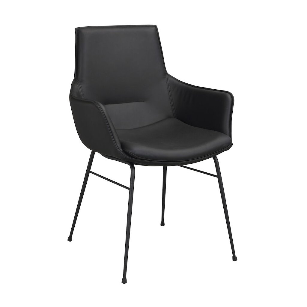 Dizajnová jedálenská stolička LOWELL od švédskeho dizajnového výrobcu nábytku ROWICO. LOWELL je kožené kreslo prevedenie s pohodlné sedadlo s operadlom v čiernej farbe. Má robustné sedadlo a 2 pohodlné podrúčky. Štyri čierne lakované tenké kovové nohy zabezpečujú maximálnu nosnosť a stabilitu stoličky. Pohodlie je na prvom mieste.