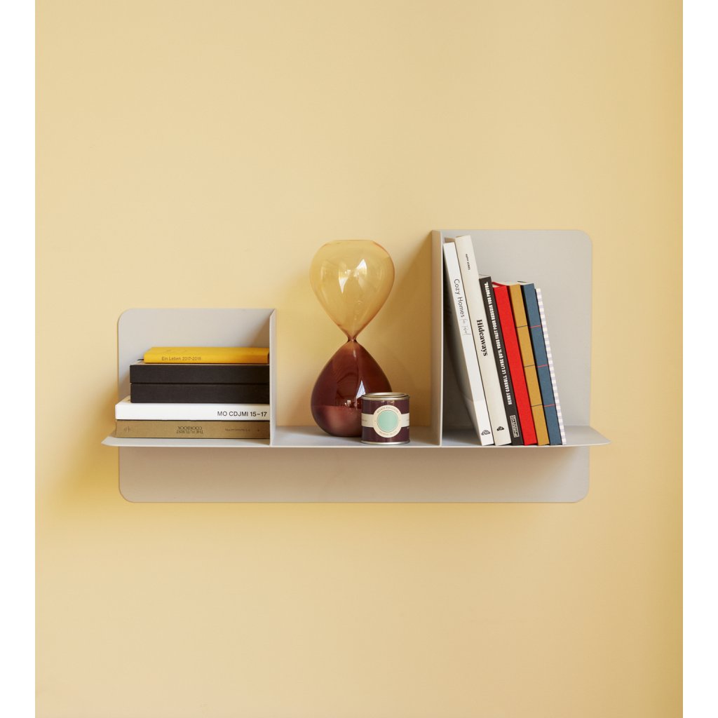 Nástenná polica FOLD od dánskej škandinávskej značky nábytku HÜBSCH. Polica FOLD je kompletne vyrobená zo železa v sivej farbe. Regál ponúka tri rôzne možnosti ukladania. Skvele sa hodí na uloženie základných vecí. Na poličke môžete vystaviť aj ďalšie príslušenstvo a fotografie. Sivý kov pôsobí minimalisticky a čisto.
