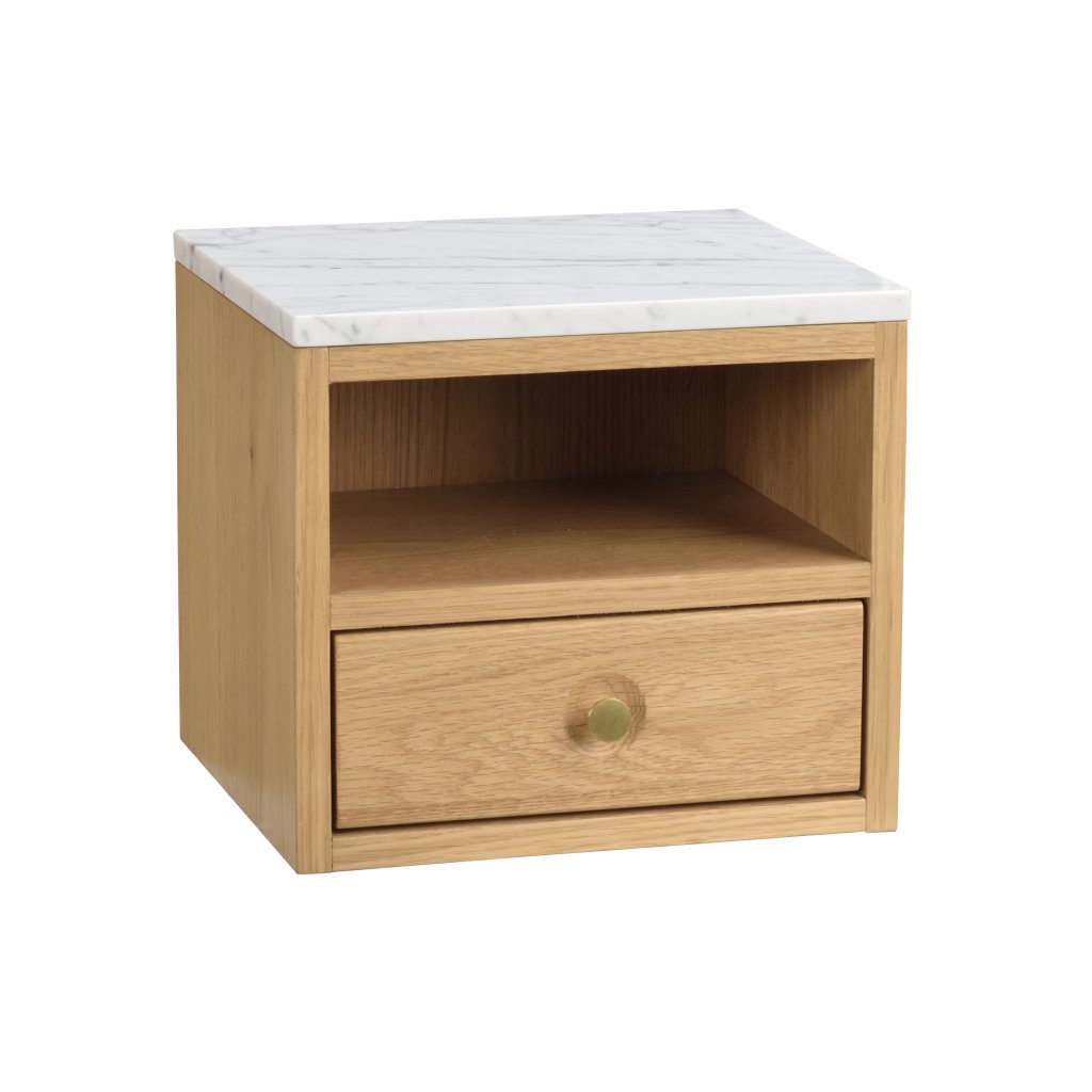 Dizajnový nočný stolík WHITMORE od švédskeho dizajnového výrobcu ROWICO. Elegantný nočný stolík alebo tiež nástenná polica je vyrobená z lakovaného dubového dreva. Stolík má bielu mramorovú dosku a zásuvku s krásnou mosadznou úchytkou. Skvele sa hodí do predsiene alebo spálne. Nočný stolík má jednu zásuvku, ktorá ponúka veľmi praktický úložný priestor. Doplňte stolík ďalším nábytkom od výrobcu ROWICO pre dokonalý interiér.