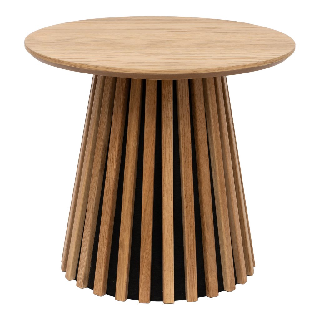 Krásny konferenčný stolík OSAKA od dánskej značky krásneho škandinávskeho nábytku HOUSE NORDIC. Odkladací stolík spája jednoduchosť, prírodnú krásu a funkčný dizajn. Okrúhla doska s priemerom 50 cm je vyrobená z kvalitnej MDF dosky s povrchom z dubovej dyhy, ktorá zaujme jemnou kresbou a teplým prírodným odtieňom. Vďaka FSC certifikácii je stolík vyrobený s ohľadom na životné prostredie. Kompaktná výška 45 cm z neho robí ideálny kúsok k sedačke, posteli alebo do čitateľského kútika.