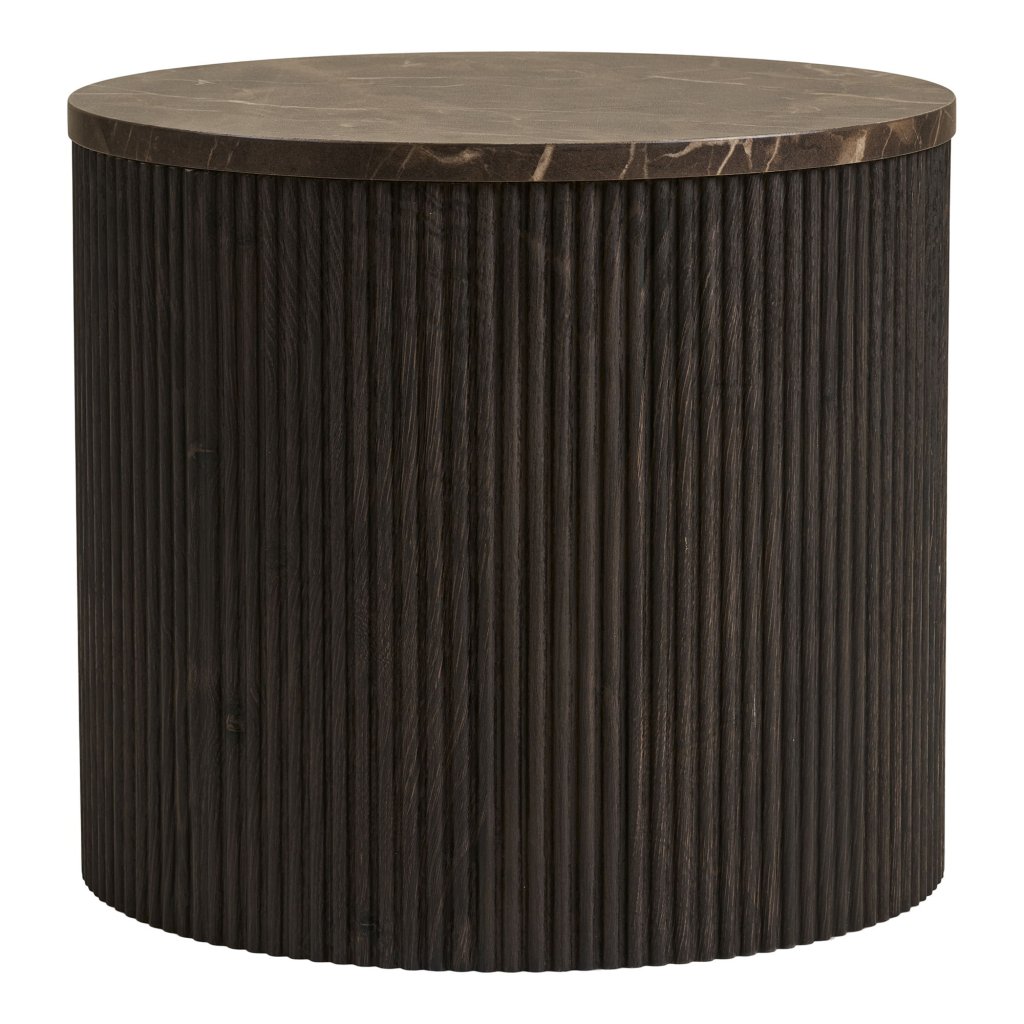 Krásny okrúhly odkladací stolík ROTA od dánskeho výrobcu nádherného nábytku HOUSE NORDIC. ROTA v elegantnom hnedém mramorovom vzhľade predstavuje moderné a praktické riešenie do obývacej izby. Doska je vyrobená z kvalitnej MDF dosky s dekoratívnou fóliou a realistickým efektom mramoru, ktorý dodáva stolíku luxusný vzhľad. Drevo má certifikáciu FSC, ktorá zaisťuje udržateľný pôvod a dlhú životnosť nábytku.