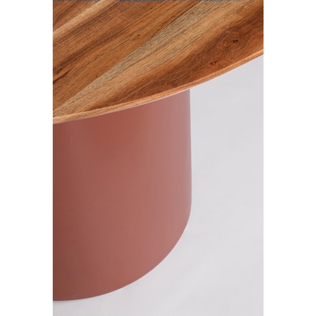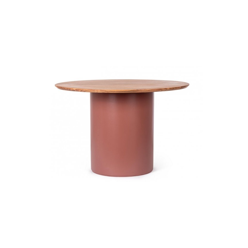Štýlový jedálenský stôl OJAS by talianskeho výrobcu dizajnového nábytku BIZZOTTO. Krásny a elegantný okrúhly stôl tvorí spodnú masívne valcovitá noha hnedej farby, za ktorou nasleduje drevená okrúhla doska s priemerom 115 cm. Celý stôl je vyrobený z akáciového dreva.