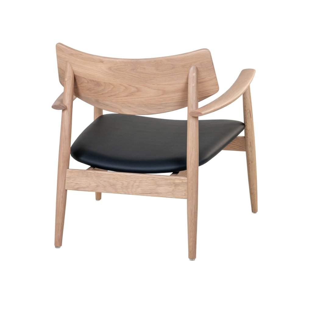 Štýlové drevené kreslo OLVERA od dánskeho výrobcu krásneho nábytku HOUSE NORDIC. OLVERA má konštrukciu z masívneho dubového dreva vo svetlom vyhotovení. Skladá sa zo 4 nôh, 2 podrúčok, ktoré sa spájajú do štýlovo zakriveného operadla. Sedadlo je potiahnuté penou a umelou kožou v čiernej farbe. Skvelé kreslo do každého interiéru.