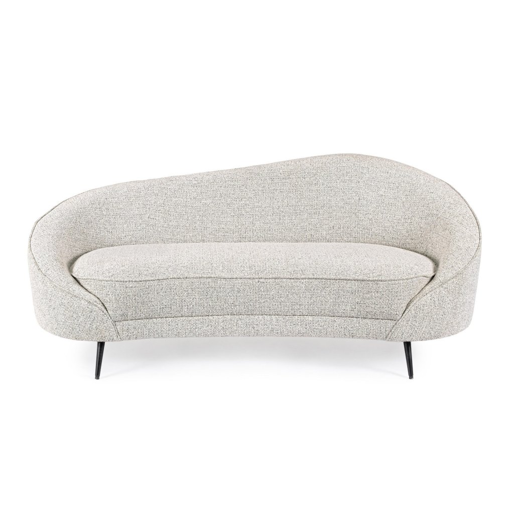 Krásna pohovka CONSTANTIN od talianskeho výrobcu kvalitného nábytku BIZZOTTO s konštrukciou z preglejky a borovicového dreva doplnené o kovové nohy. Svetlosivý textilný poťah je prekrytý cez pevnú polyuretánovú penu. Nádherne nerovnú líniu hornej podrúčky dopĺňajú dve klesajúce zaoblené podrúčky po stranách. Veľmi krásna a štýlová pohovka.