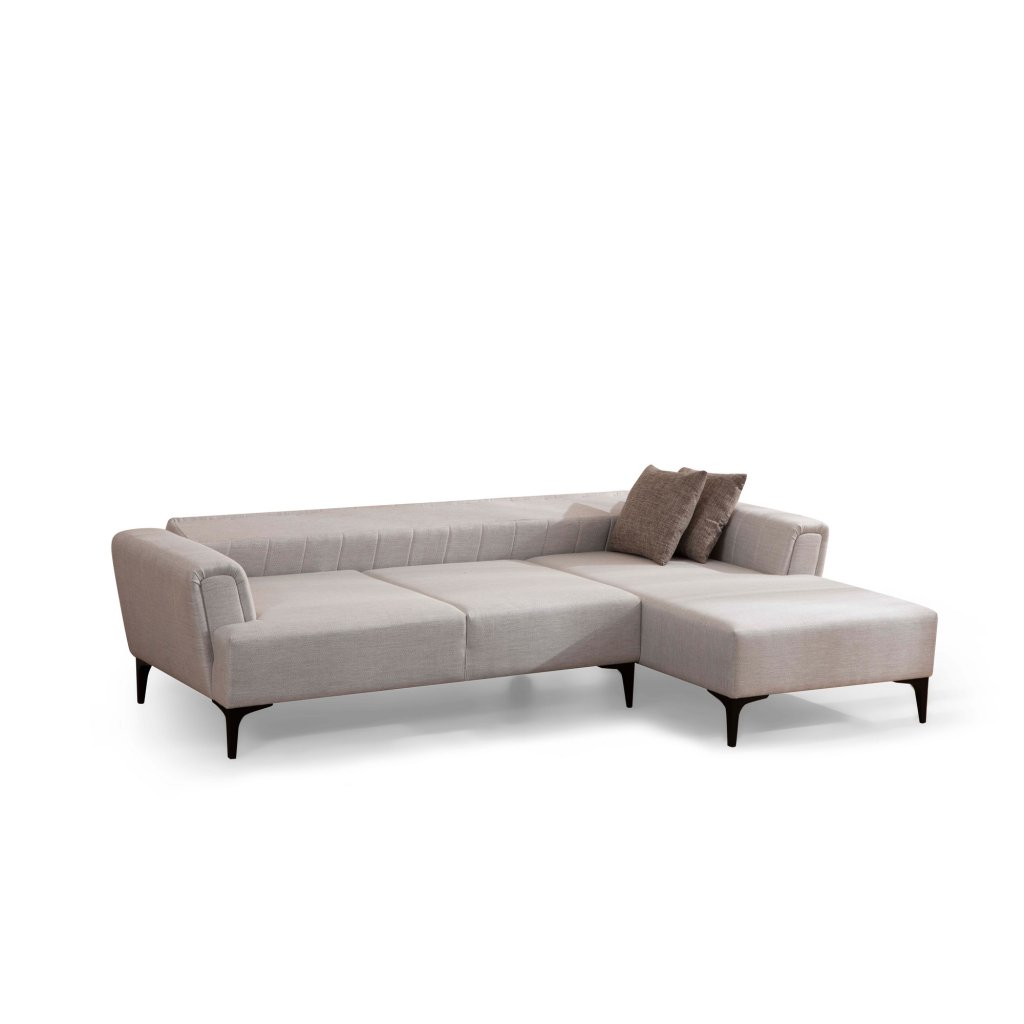 Dizajnová rohová pohovka HAMLET od výrobcu nábytku a pohoviek Hanah Home. Pohovka HAMLET vás zaručene zaujme na prvý pohľad. Veľmi štýlová rohová pohovka vás osloví nielen kvalitným spracovaním, ale aj svojim minimalistickým dizajnom. Rám je vyrobený z kombinácie bukového dreva a drevotriesky. Krásna krémová látka je zo 100% polyesteru. Sedák je vyplnený penou. Pohovka bude skvelým miestom na oddych a relaxáciu. HAMLET je veľmi priestranná. Pohodlne sa na ňu usadia štyria ľudia. Vďaka otočnému chrbtovému mechanizmu je pohovka rozkladacia.