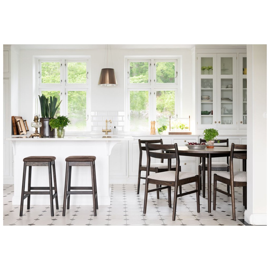 LIVERMORE v kombinácii tmavo hnedého duba a tmavo hnedej koženej textílie skvele doplní interiéry v prírodnom, industriálnom aj škandinávskom štýle. Ladí s kuchyňami s drevenými alebo kamennými pracovnými doskami, s neutrálnymi tónmi aj kovovými prvkami. Odporúčame kombináciu s čiernym, pieskovým alebo mosadzným osvetlením a prírodnými textíliami pre harmonický a štýlový priestor.
