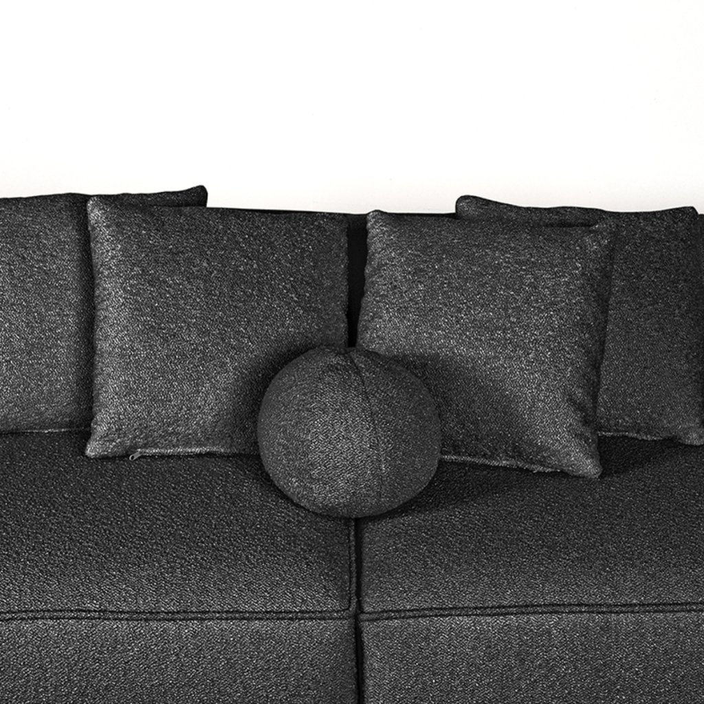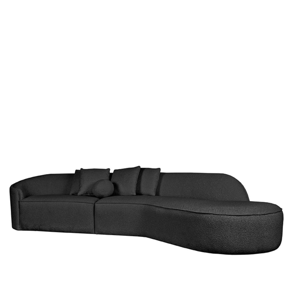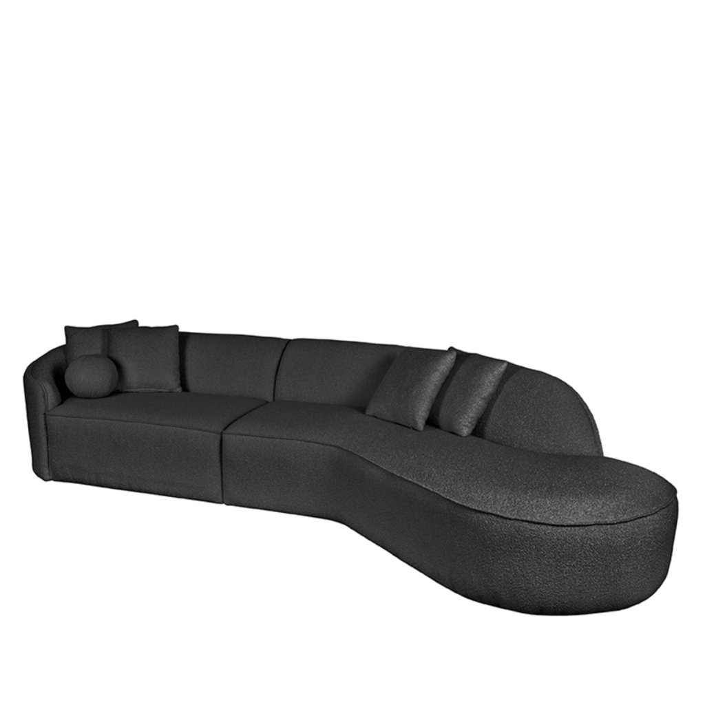 Štvormiestna pohovka FLORI od holandského výrobcu industriálneho nábytku LABEL51. Pohovka FLORI je luxusná, veľmi kvalitná pohovka, s najkrajšími prírodnými oblými tvarmi a veľmi pôsobivým vzhľadom. FLORI tvorí drevěná konštrukcia a potah je z kvalitnej tkaniny bouclé. FLORI má svoj dominantný a robustný dizajn. Kvalitný potah v antracitovej farbe pokrýva výplň z odolnej peny. Pohovka sa dodáva so štyrmi štvorcovými vankúšmi 40x40 cm čalúnenými látkou bouclé a čalúneným vankúšom s tvarom guľa. Pohovka FLORI má štyri sedadlá a lenošku vpravo.