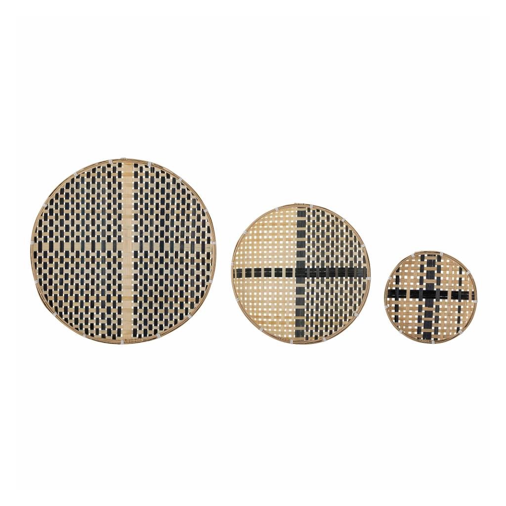 Set 3 okrúhlych dekorácií TONA dánskej značky krásneho nábytku BLOOMINGVILLE. Set 3 okrúhlych dekorácií, ktoré majú rozdielnu veľkosť, sú vyrobené z jednotlivých tenkých bambusových latiek a to vo svetlom a čiernom farbení. Krásny set, ktorý umiestnite do knižnice alebo pripevníte na stenu na vašom obľúbenom mieste.