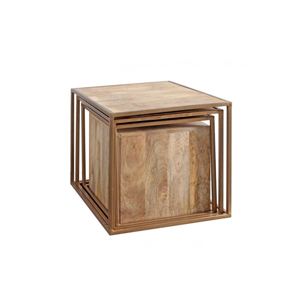 Dizajnový set odkladacích stolíkov JAIDEV od talianskej firmy BIZZOTTO. Stolíky JAIDEV sú vyrobený z ocele s práškovou povrchovou úpravou zlatej farby s vrchnou časťou z mangového dreva. Stoly sú kompaktné, minimalistické. Nádherne nimi obohatíte svoju obývaciu izbu. S nádychom industriálneho štýlu sa skvele hodí do každého interiéru.