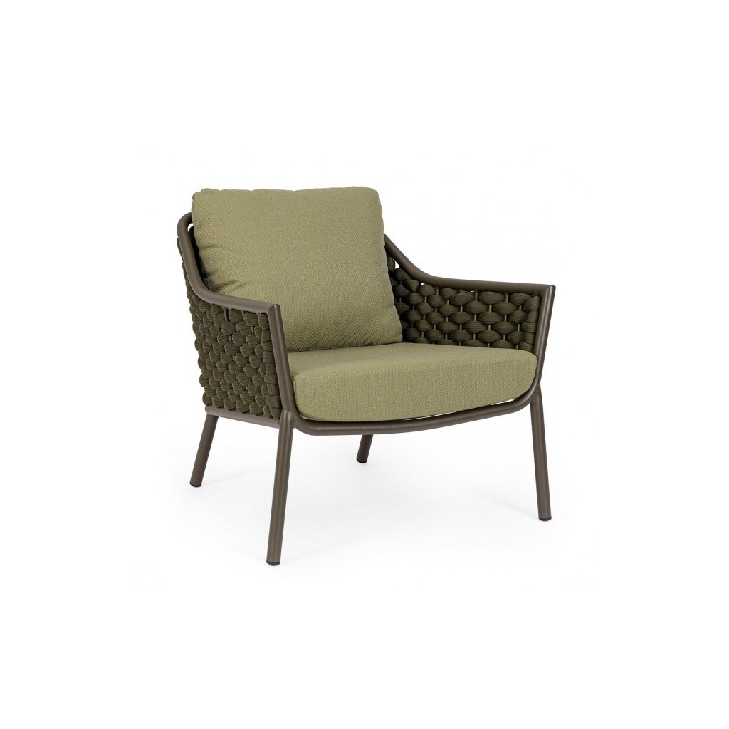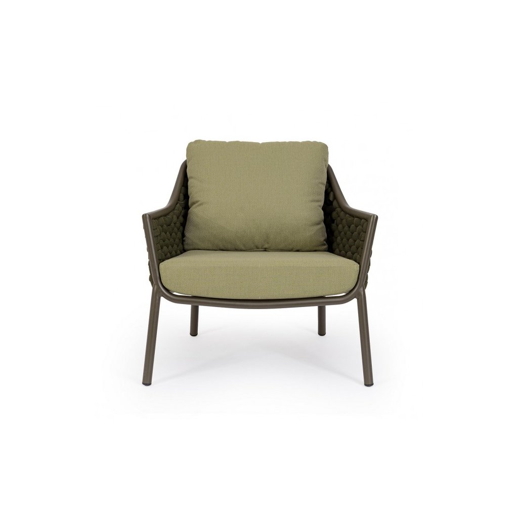 Dizajnové záhradné kreslo EVERLY od talianskej firmy štýlového nábytku BIZZOTTO. Křeslo EVERLY tvorí hliníkový rám s práškovým náterom, záda sú vyplnené textilným lanem s náplní z nitrilovej gumy. Sedadlo a zadní polštář jsou z olefínových látek v olivové barvě. Krásne a veľmi pohodlné kreslo v tradičnom a žiadanom prevedení. Křeslo se stane Vaším oblíbeným společníkem ve chvíli odpočinku a relaxace.