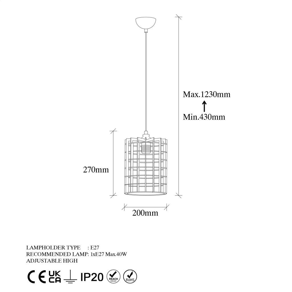 Odporúčané svietidlo: 1x žiarovka so závitom E27, max. príkon 40 W